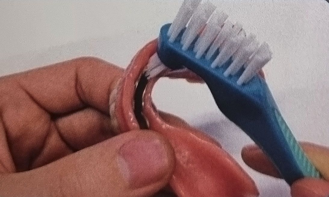 You can clean your removable denture with a specially developed denture brush. Due to its